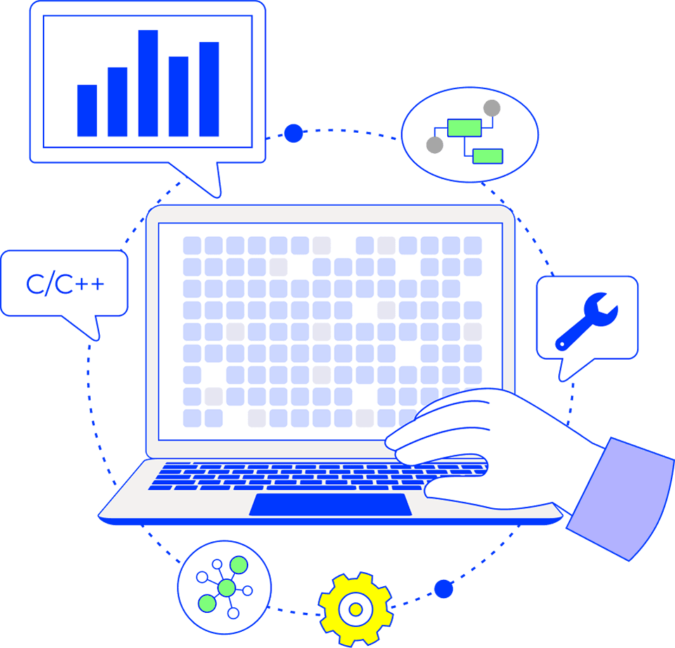 創業時から培ったゲームソフト開発のノウハウを活かし、 「企画・デザイン・プログラム・品質管理」の 一貫開発(ワンストップサービス)で、 安定した品質の製品を提供しています。
